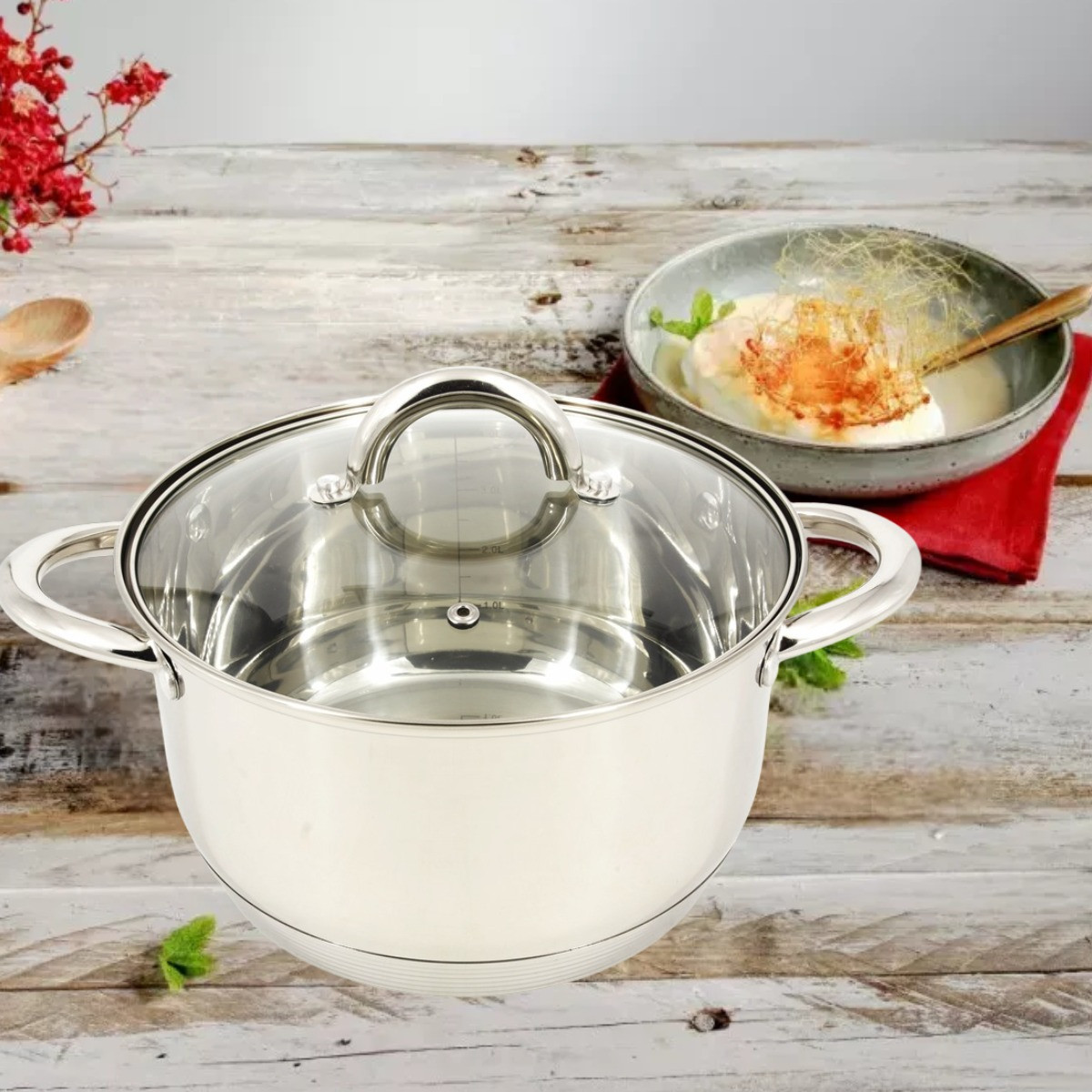 Каструль багато не буває, це знають усі хазяйки, які люблять готувати. Каструля на 3.6 літра виготовлена з високоякісної неіржавкої сталі в комплекті з кришкою з термостійкого скла з паровідводом, стане вашим улюбленим атробутитом на кухні. Легко чиститься і зберігає бездоганний зовнішній вигляд упродовж тривалого часу. Зтильний оригінальний дизайн, простота в догляді та використанні, екологічність і довговічність — ось відмінні риси цього посуду.